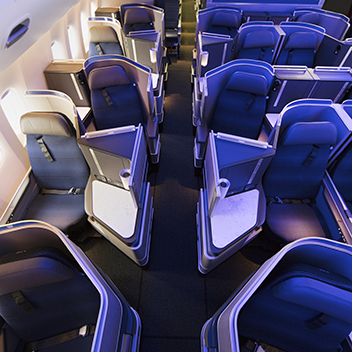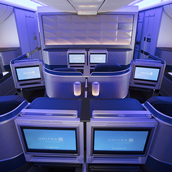 • United PolarisSM Business class: El Boeing 777-200 de United ofrece 50 asientos de clase ejecutiva United Polaris, privados y totalmente reclinables, con acceso directo al pasillo. Incluyen dos piezas de equipaje gratis, Premier Access®, pantalla de entretenimiento grande, auriculares con cancelación de ruido, puertos de carga y amplio espacio de almacenamiento. Los pasajeros reciben kits de amenidades Therabody y, en vuelos internacionales de larga distancia, acceso a salones exclusivos United Polaris.